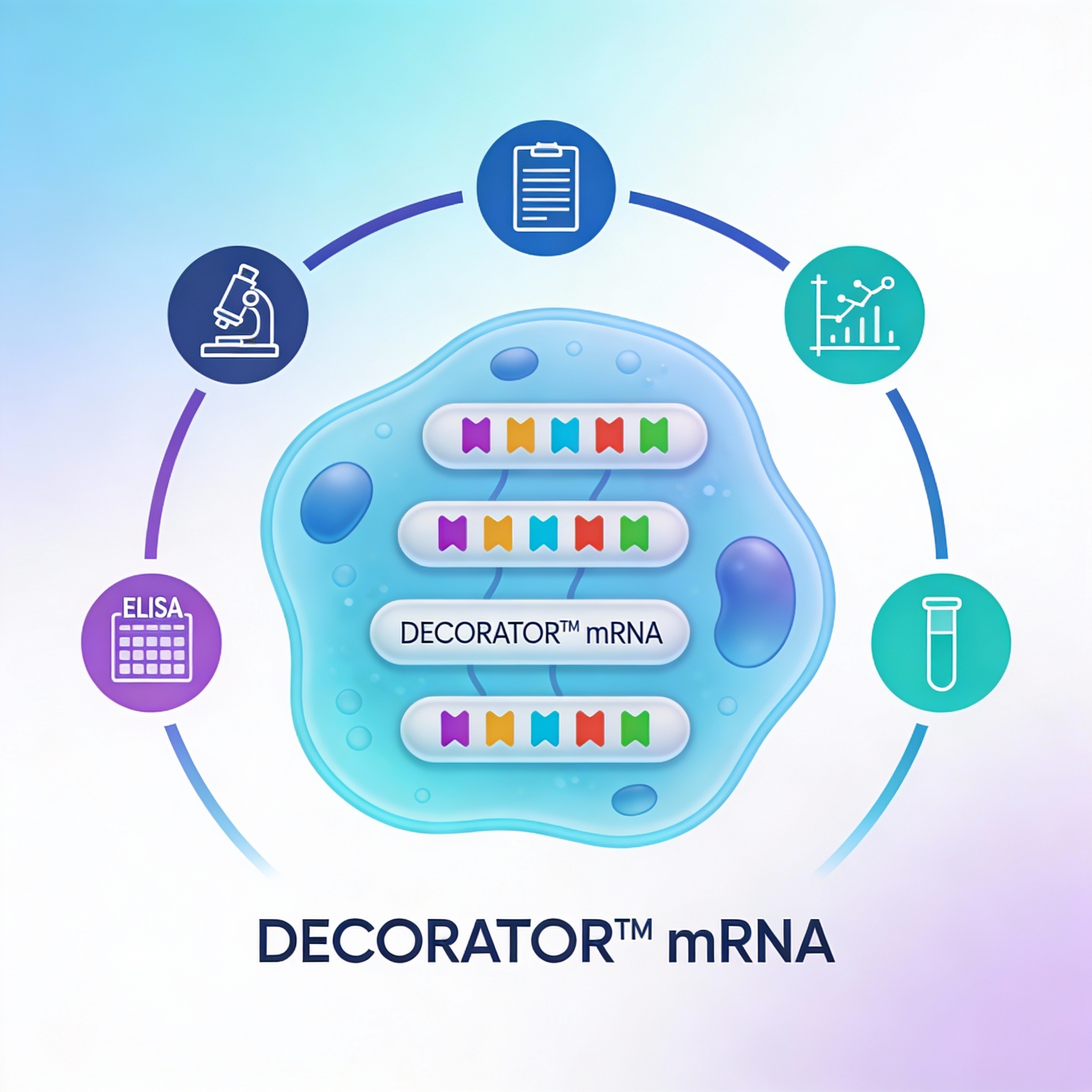 DECORATOR mRNA can be ordered with unmodified or modified bases. Bulk orders available!