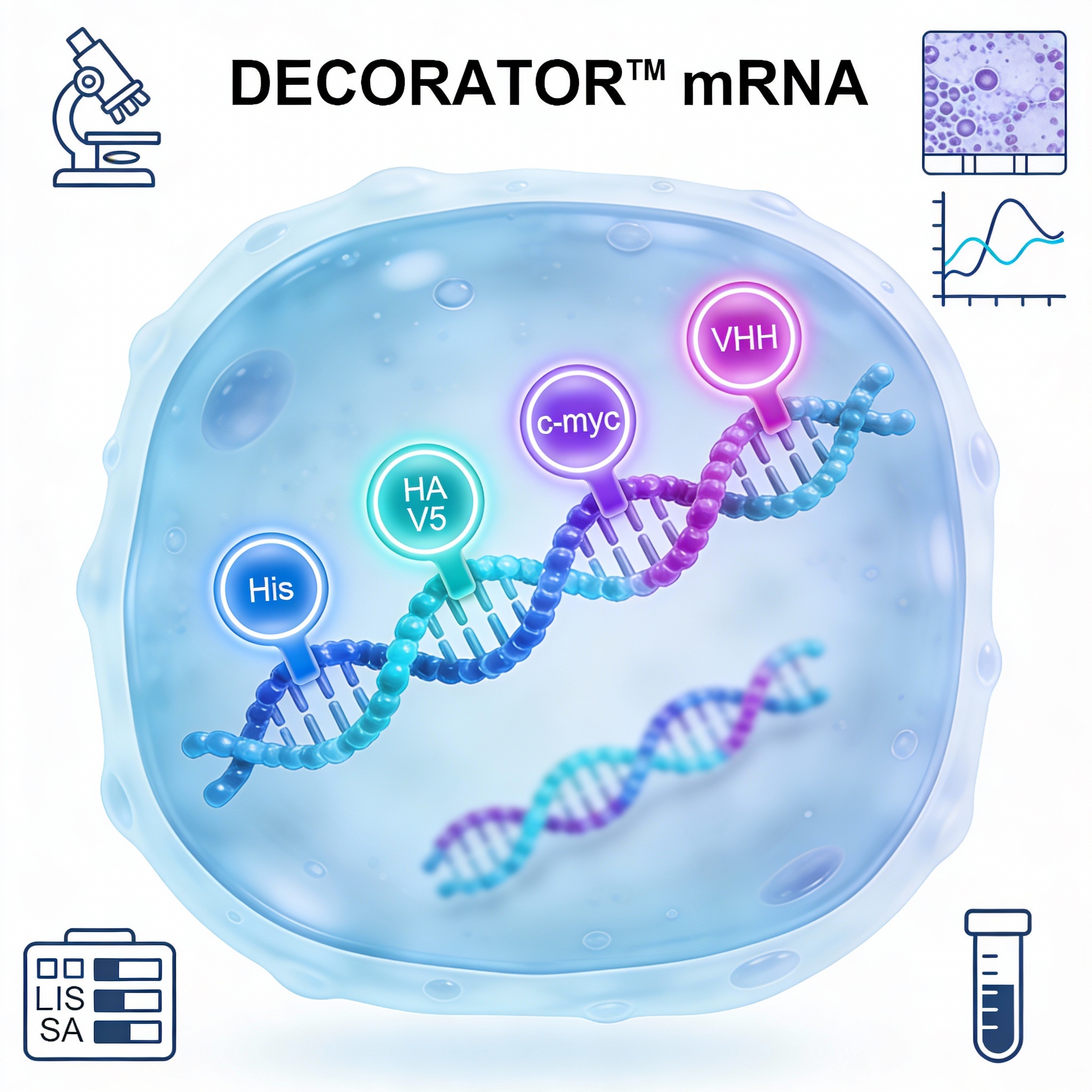 Our proprietary DECORATOR™ mRNA expressing cells and tissues can be targeted by 5 tags!